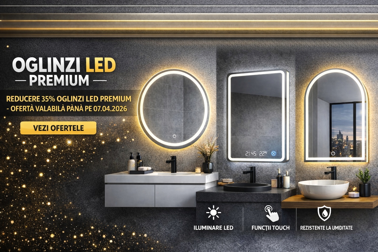 Lustre LED moderne, oglinzi smart cu dezaburire și produse personalizate. Livrare rapidă în toată România. Descoperă colecția MEC Design!