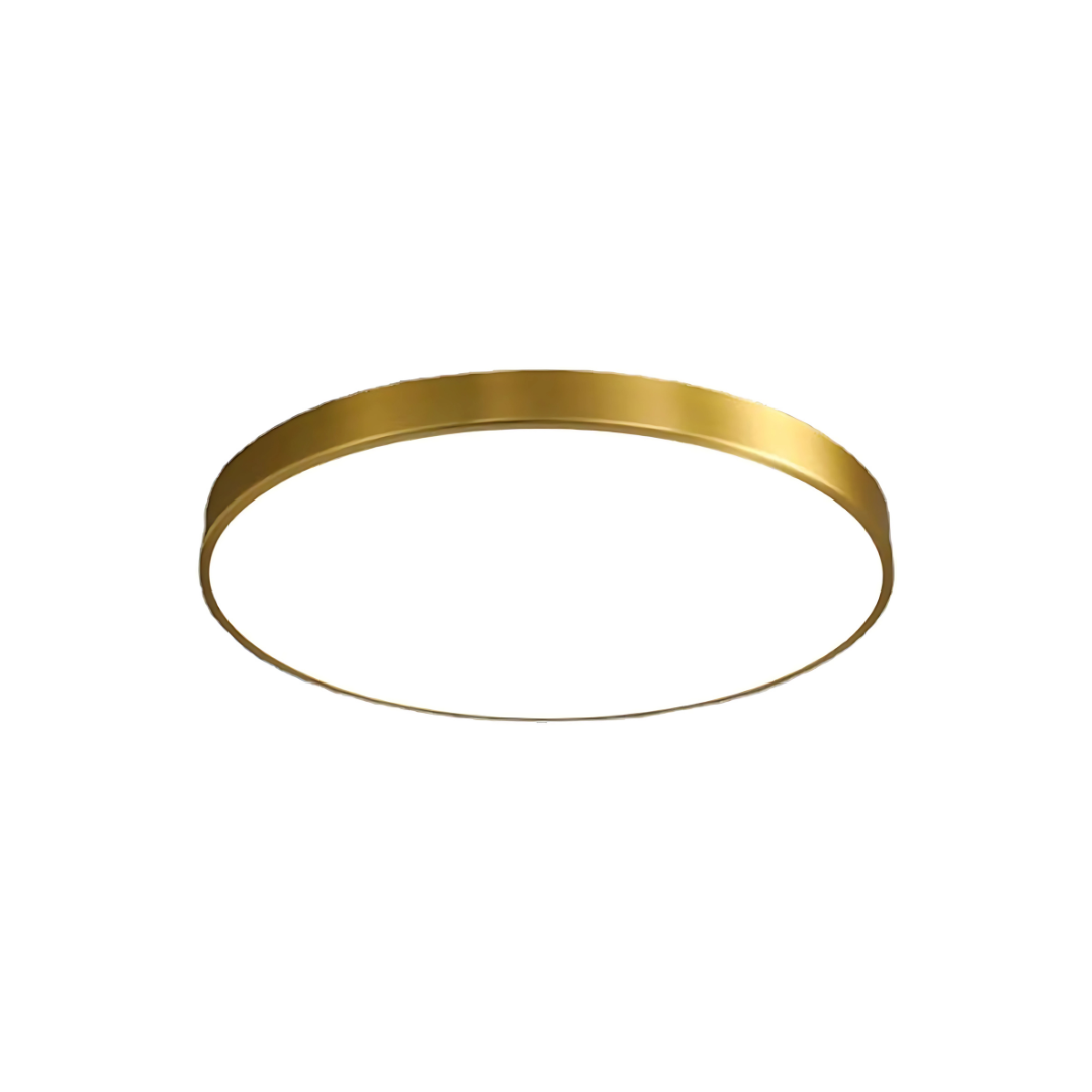 Design elegant: formă rotundă, profil ultra-subțire (3 cm), finisaj auriu premium.
