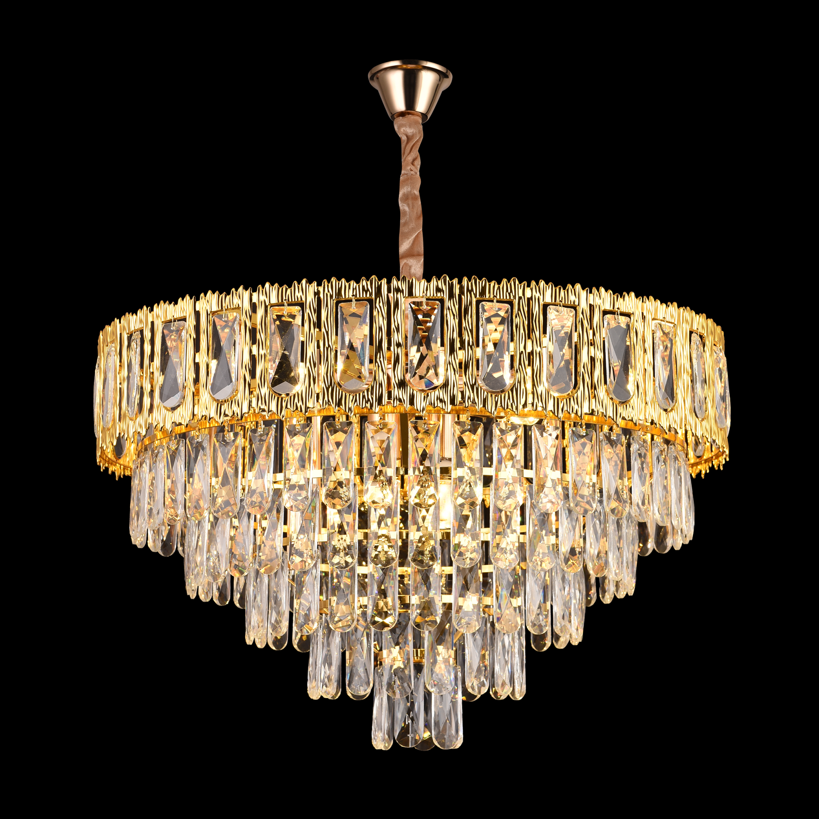 Candelabru Cristal BELVEDERE Magno 8xE14, Diametru 60cm, Auriu Lucios, Inaltime Reglabila