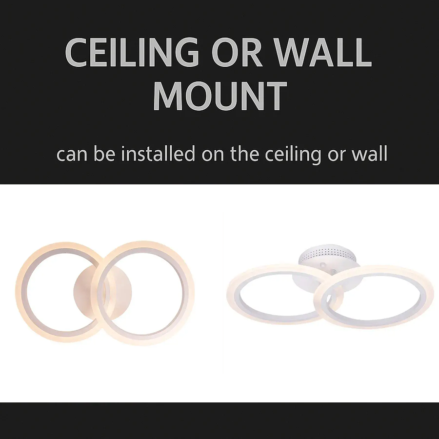 Lustra LED cu telecomanda, cu design simplu format din doua cercuri acrilice si finisaj alb, este solutia ideala pentru iluminarea holurilor si a zonelor de trecere. Aspectul discret si modern permite integrarea usoara in diverse stiluri de amenajare interioara.