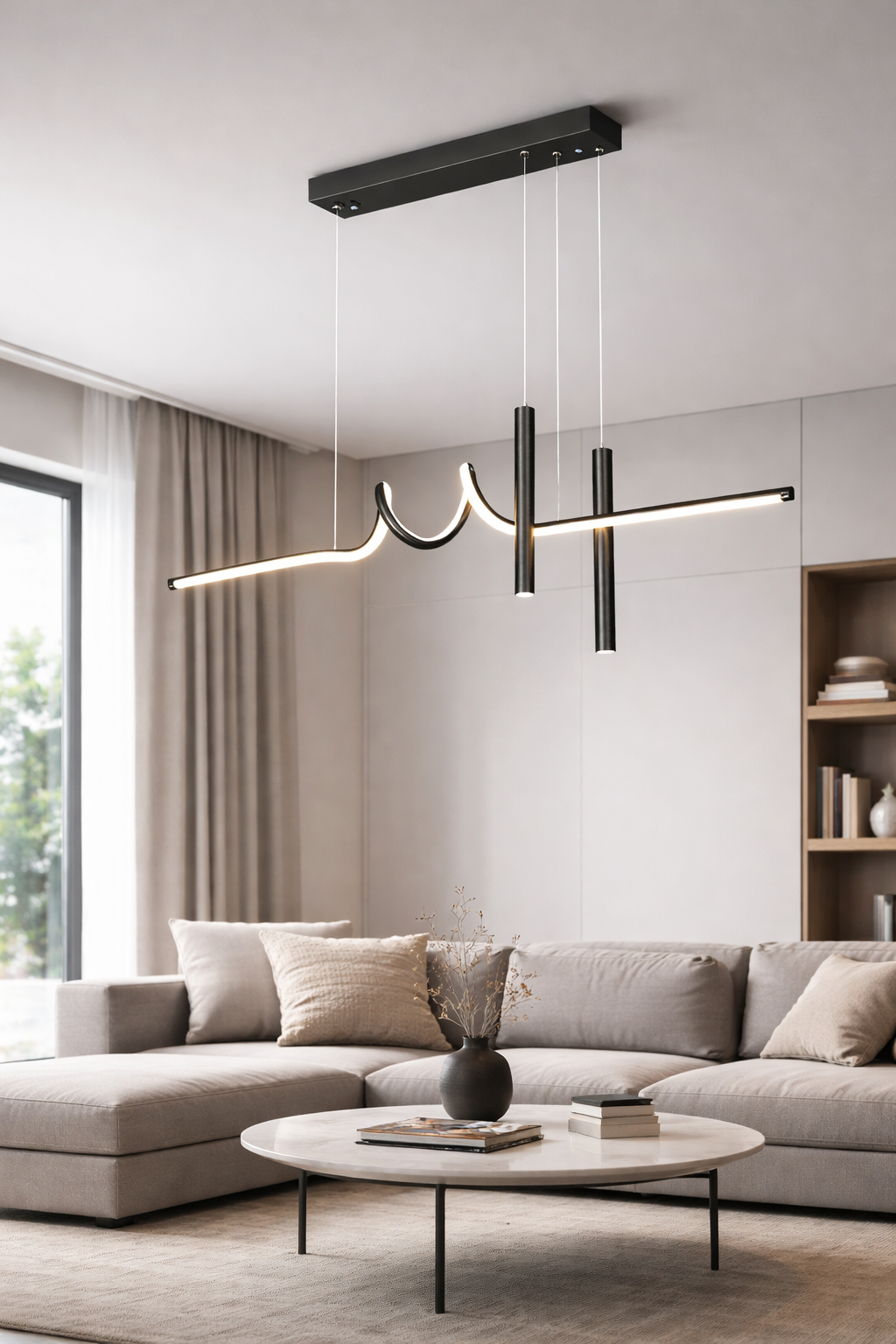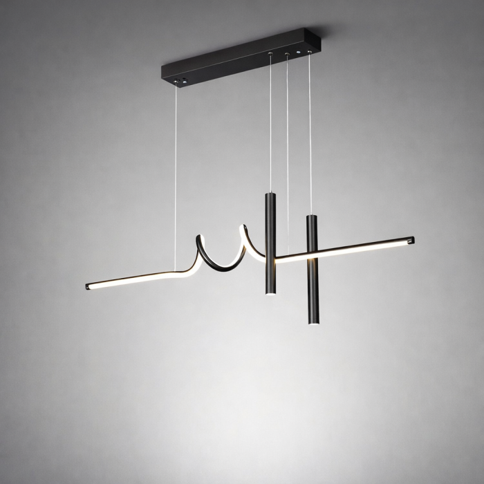 Aceasta lustra LED suspendata este proiectata pentru interioare moderne care pun accent pe functionalitate, simplitate vizuala si control al luminii. Designul liniar, finisajul negru si constructia supla o transforma intr-o alegere potrivita pentru living, bucatarie sau hol.