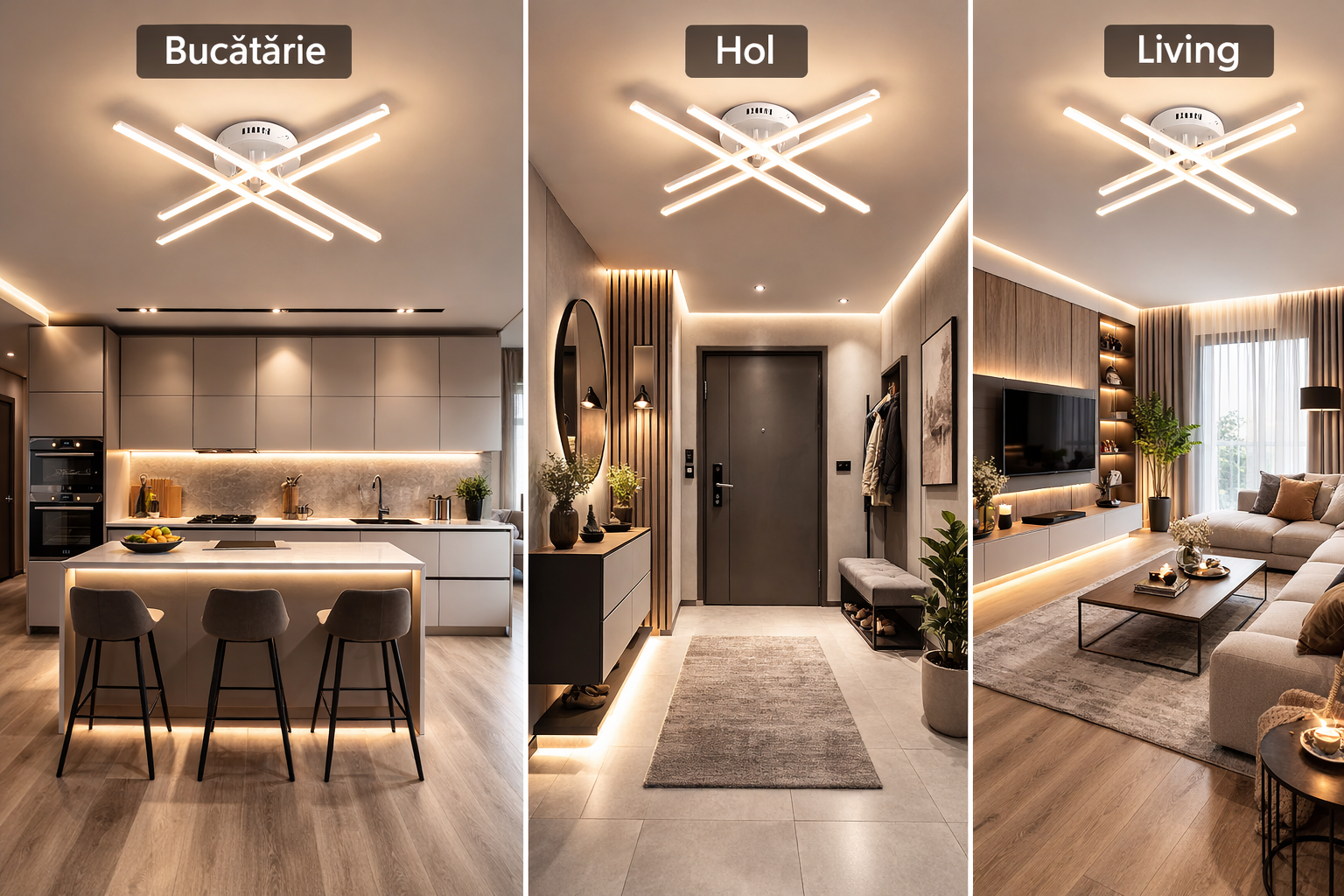Da, fluxul luminos este suficient pentru bucatarie, living sau hol.