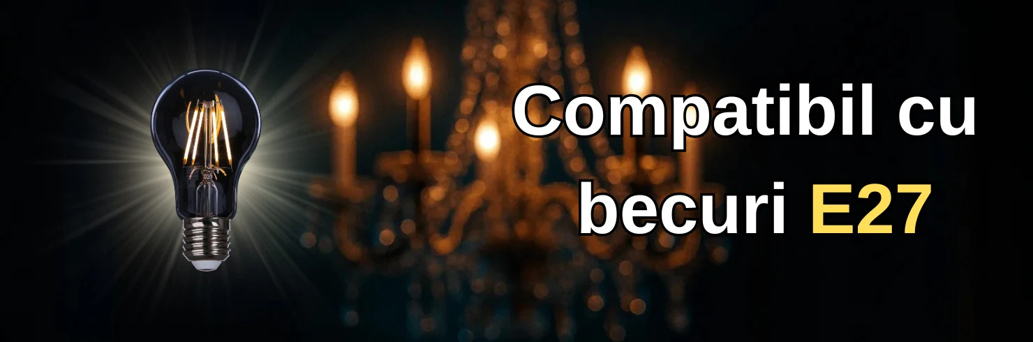 Pot fi utilizate becuri cu soclu E27, inclusiv LED sau filament.
